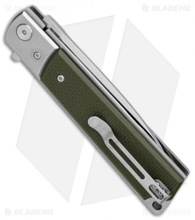 - Steel handle with green G-10 scales.