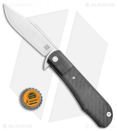 Artisan Cutlery and D. Rocket Designs have joined forces to create the Hyperion! The Hyperion is a flipper knife made out of the best materials on the market. The handle has a lightweight titanium frame with carbon fiber scales that are as tough as they are attractive. Carrying on the theme, both the tip-up pocket clip and backspacer are titanium, the backspacer featuring a slot for a lanyard. Once in hand, a push on the flipper tab will propel the blade into its locked position. The clip-point style blade is satin-finished CPM-S35VN stainless steel, a steel known for taking an edge easily and then holding that edge. The Hyperion is made from high-quality material, and it’s made by high-quality craftsman—this knife that will last a lifetime.