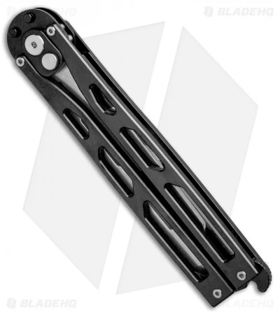 The Kinetic-Tool is truly a one-of-a-kind multi-tool from Artisan Cutlery. Breaking the mold of what a butterfly knife is supposed to be, they incorporated an automatic push-button mechanism as well. The dull trainer blade has a pry bar tip, bottle opener, hex wrench, and a 3″ ruler. Includes a titanium latch for locking the handle when the blade is open or closed.