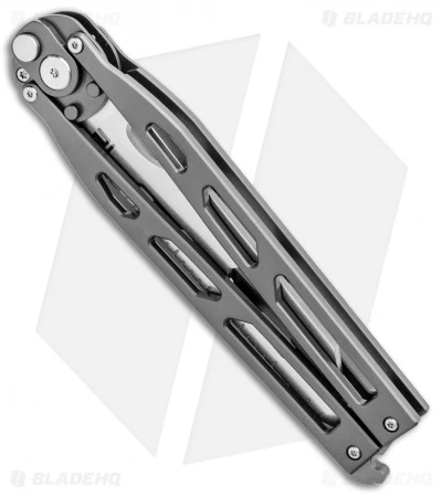 The Kinetic-Tool is truly a one-of-a-kind multi-tool from Artisan Cutlery. Breaking the mold of what a butterfly knife is supposed to be, they incorporated an automatic push-button mechanism as well. The dull trainer blade has a pry bar tip, bottle opener, hex wrench, and a 3″ ruler. Includes a latch for locking the handle when the blade is open or closed.