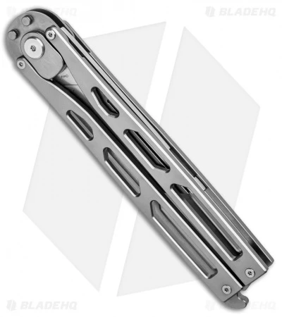 The Kinetic-Tool is truly a one-of-a-kind utility tool from Artisan Cutlery. Breaking the mold of what a butterfly knife is supposed to be, they incorporated an automatic push-button mechanism as well. The dull trainer blade has a slot fitted to accommodate a standard utility razor blade. Includes a latch for locking the handle when the blade is open or closed.