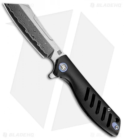 The Artisan Cutlery Tomahawk was designed with a unique profile that will look great in your collection. This model sports a black titanium handle and a modified wharncliffe damascus steel blade. A ceramic ball bearing pivot offers smooth deployment with the aid of a flipper. An anodized pivot collar and a deep carry pocket clip finish off the design.